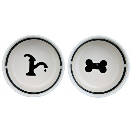 Futternapf für Haustiere Trixie Double Schüssel Weiß Schwarz Keramik 0,6 L